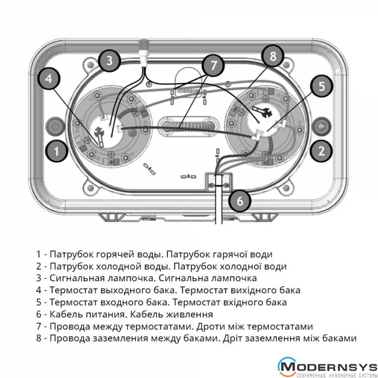- Индикатор нагрева воды на нижней части корпуса