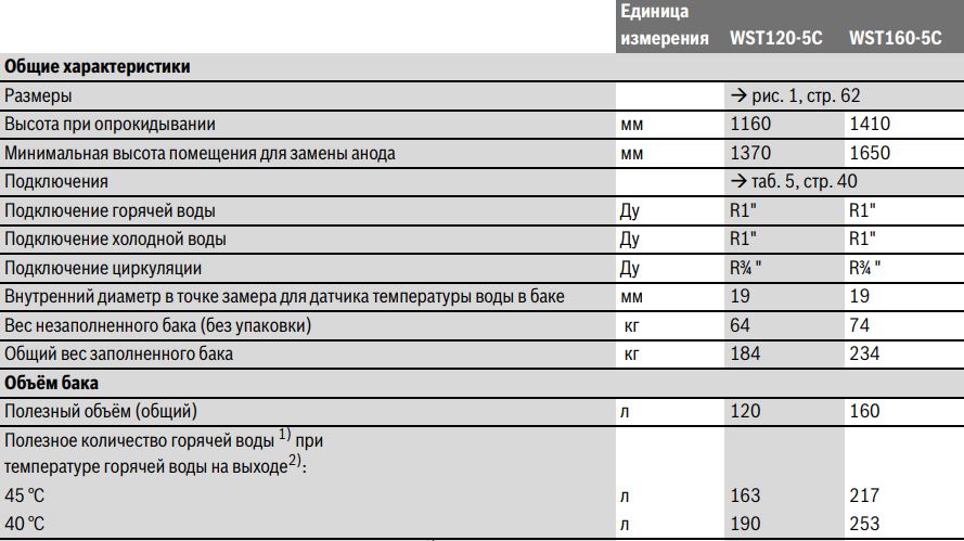 Технические характеристики: Бойлер Bosch (Бош) WST 120-5C (8718543056)