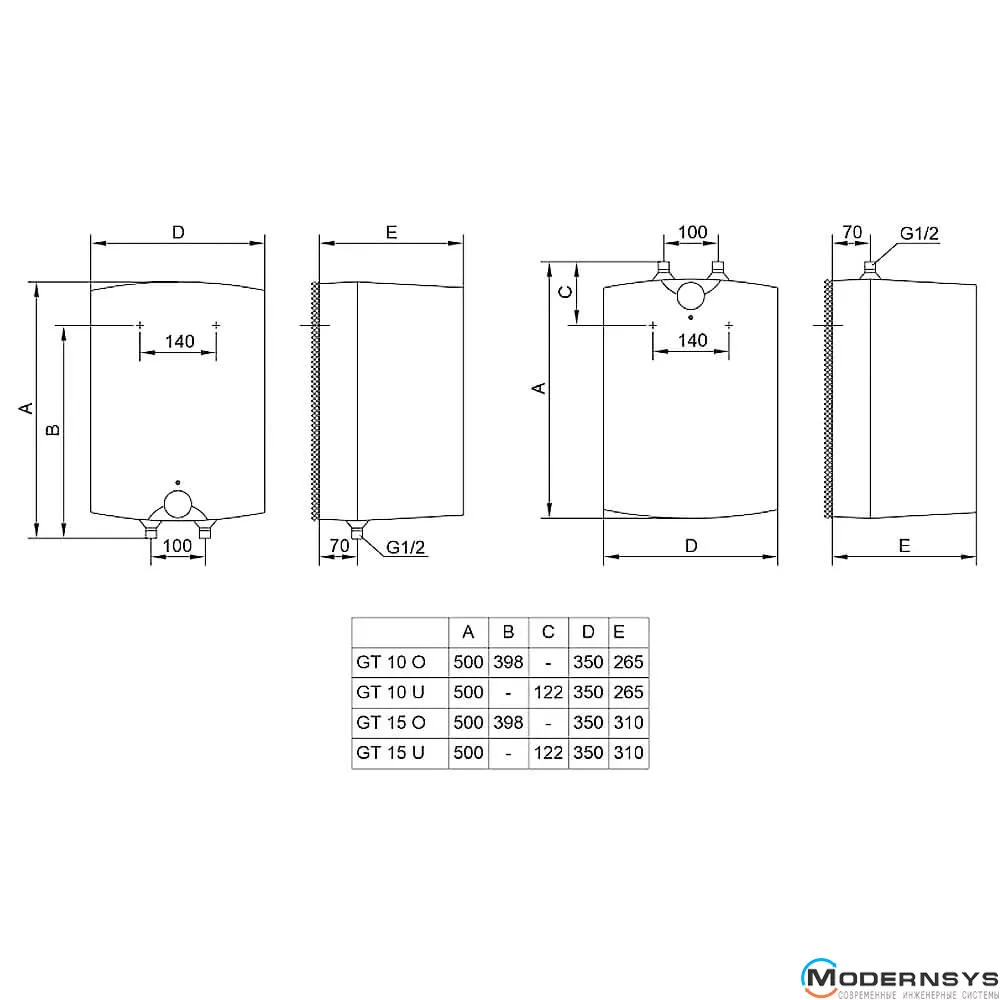 Технические характеристики: Водонагреватель TIKI MINI PBT 10V9 верхнее подключение 1 × 2,0 кВт 10 л