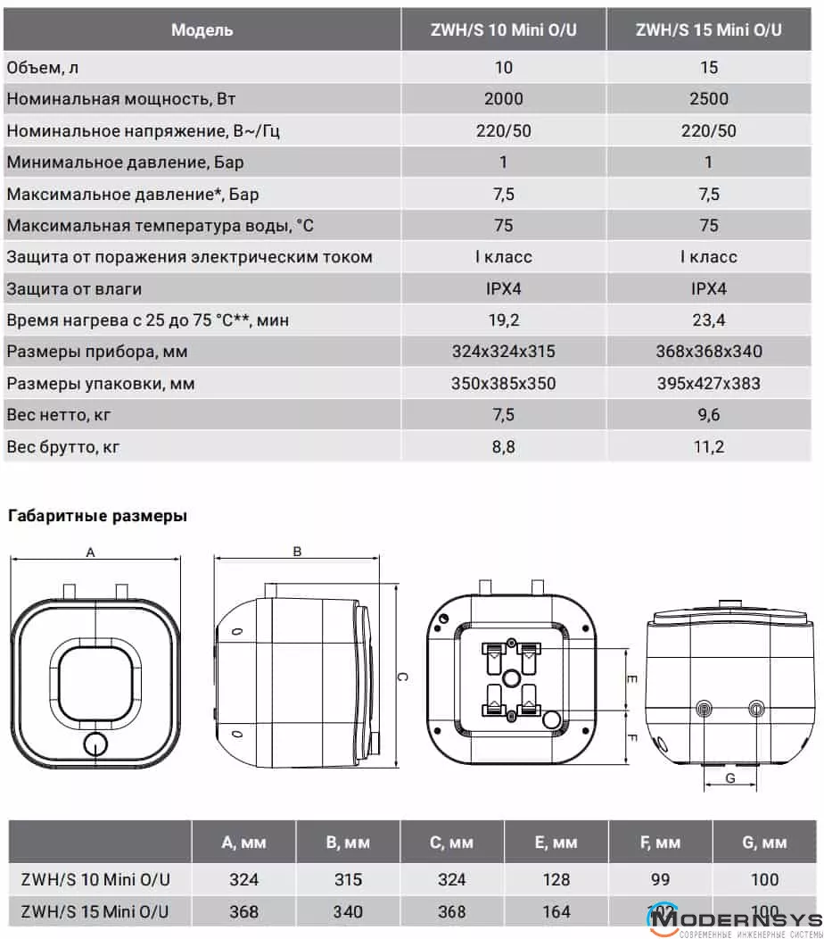 Технические характеристики: Водонагреватель Zanussi (Занусси) 15 O Mini
