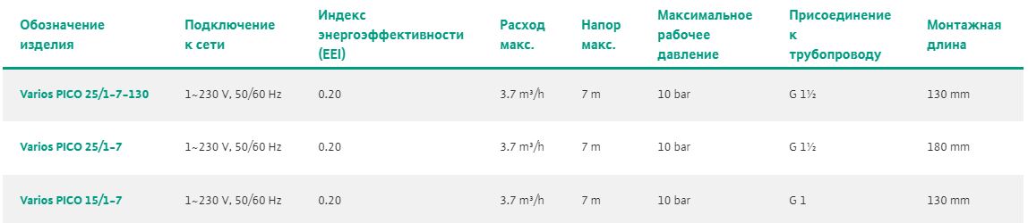 Технические характеристики: Насос Wilo (Вило) Varios PICO 15/1-7-130 (4215540)
